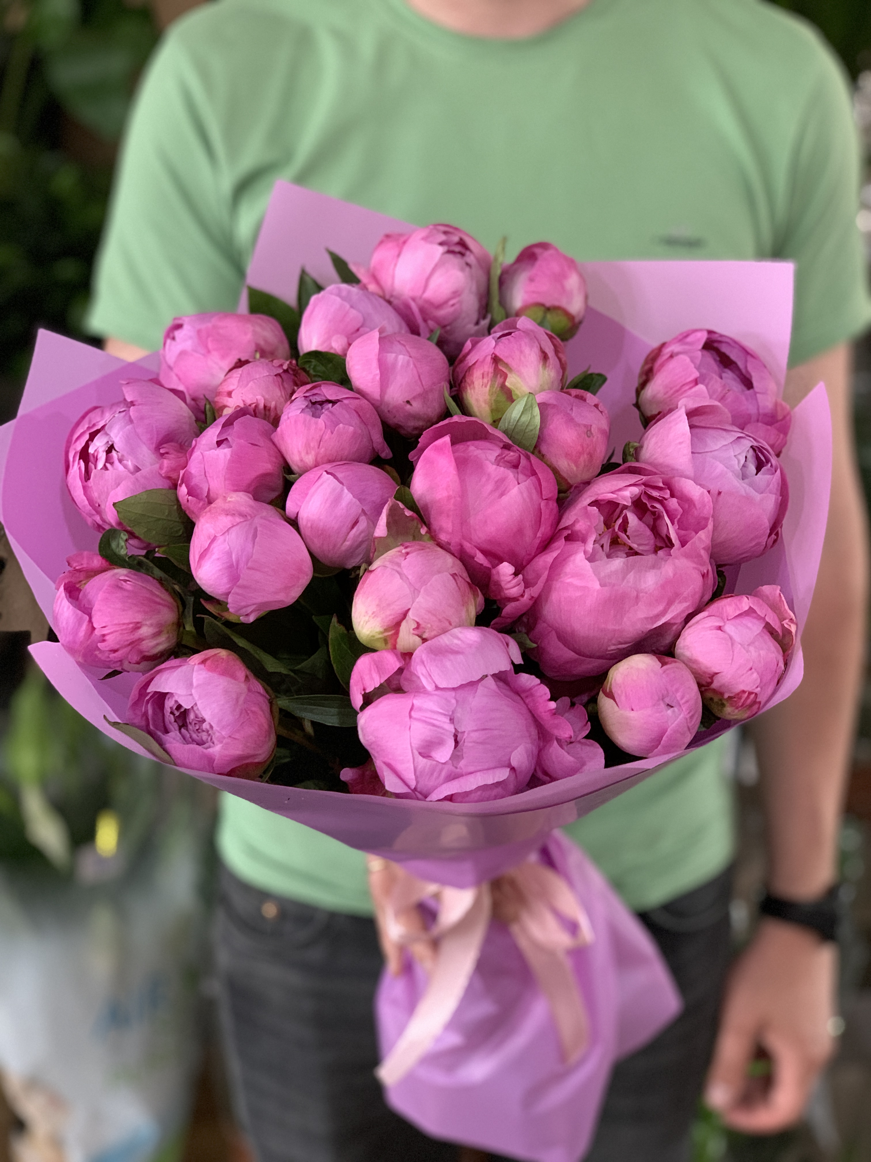 Склад: рожева півонія (голландська) 23 шт, декоративна упаковка